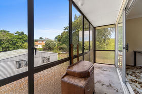 Elevated and private, the living level enjoys great natural light and a peaceful outlook. A spacious lounge flows to a small conservatory, creating a cosy spot for morning coffee or afternoon sun. The separate dining and galley-style kitchen are practical with plenty of storage. Both bedrooms are generously sized with built-in wardrobes, and the home includes a separate toilet for added practicality. Much of the interior is in original condition, giving you the perfect opportunity to add value and make it truly your own.
