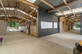 The land Is set up with safety and the wellbeing of your horses in mind. Trees for shade and paddocks well fenced with post and rail along with equi electric fencing. A central race makes its way back to the stable block, encompassing 15 light and airy boxes 5 of which are larger with lime flooring well suited for mares and foals. A wash bay and feed room, complete this area.
